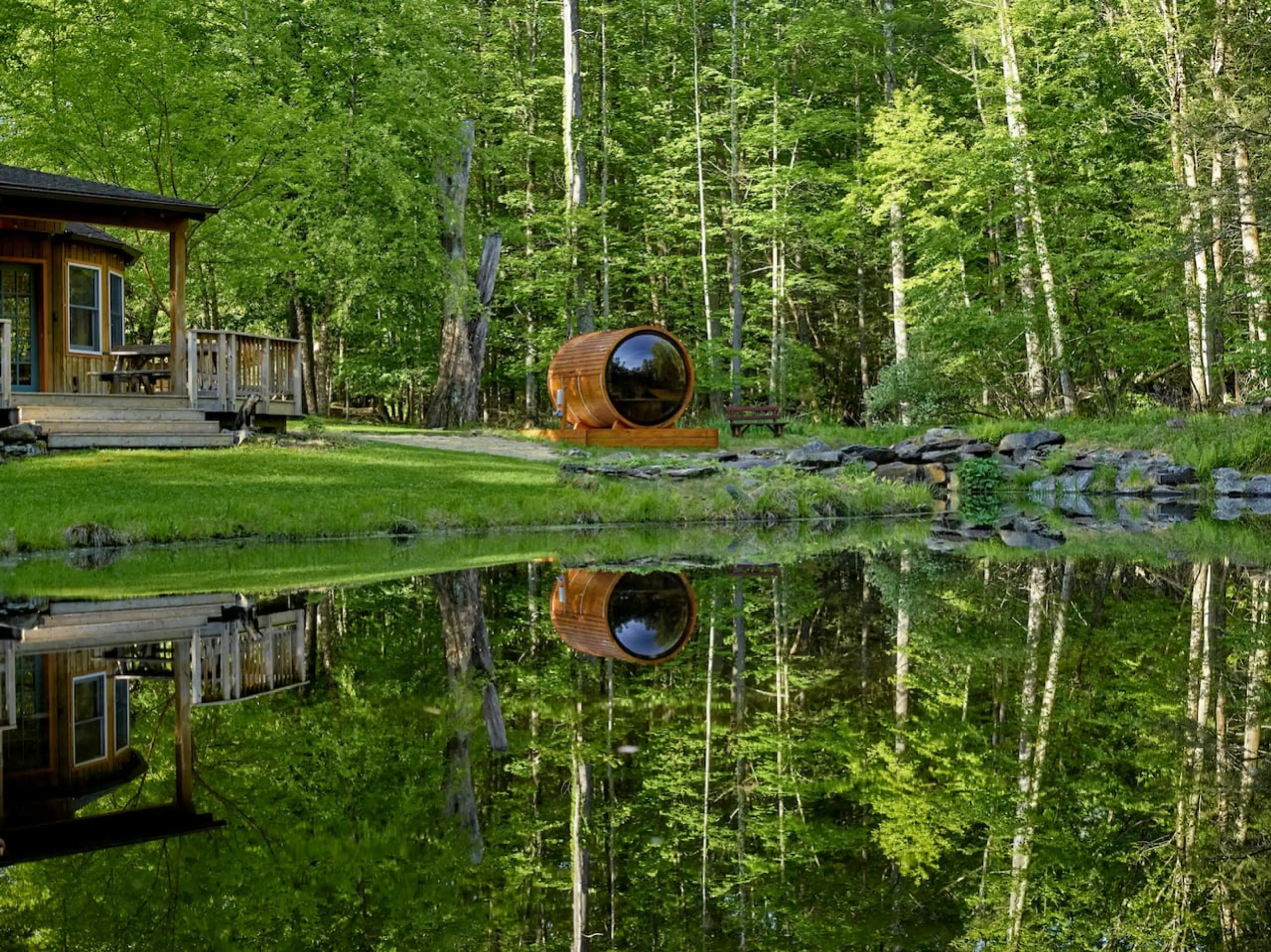 Lose yourself in a daydream at Reverie Woods – an architect and artist-designed sanctuary with Scandinavian inspiration and cobalt floors. Your private resort includes a cedar panoramic barrel sauna overlooking the pond, a spiritual yurt, and a forest deck. Perfect for romantic escapes, artist retre...